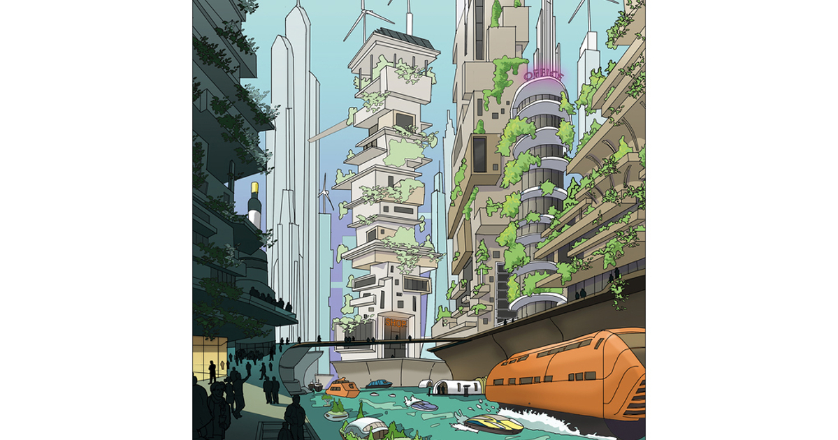 Artprint fictieve drijvende stad (de Blauwe Kamer)